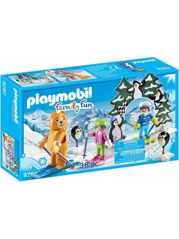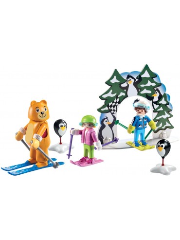 Divertimento per i piccoli sciatori: SUV con portapacchi Playmobil con gancio di traino, 2 personaggi e numerosi accessori per un gioco...