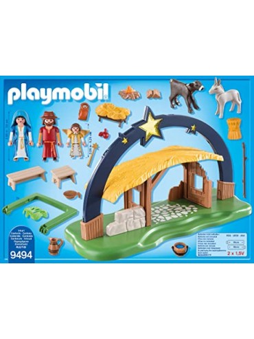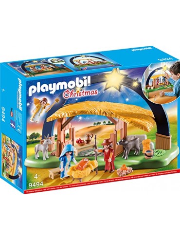 Divertimento nel periodo natalizio: presepe illuminato Playmobil con tanti personaggi e accessori per un gioco realistico Presepe curato...
