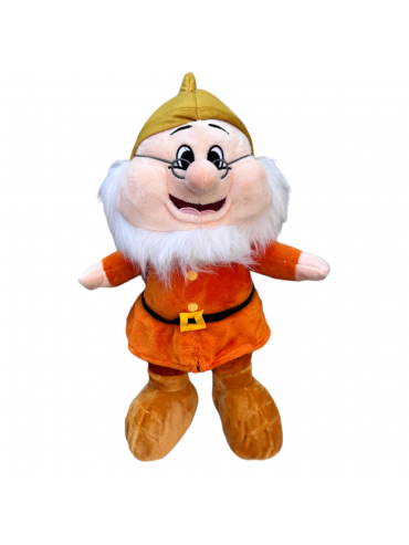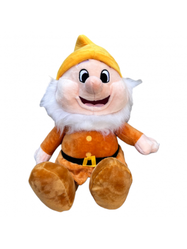 Peluche Disney di Brontolo, il più burbero dei Sette Nani, vestito con il classico abito rosso, il cappello e le scarpe marroni e la...