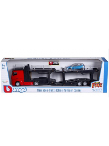 Bburago modellino B18-31456 Mercedes-Benz Actros Multicarrier con Auto sul Retro, Scala 1:43.Struttura in metallo pressofuso di alta...