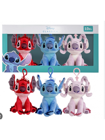 Confezione da 3 peluche con gancio per poterlo attaccare alle tue chiavi o semplicemente al tuo zainetto. Stitch, Leroy e Angel in...