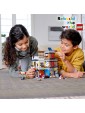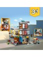 Apri le porte del Negozio degli Animali & Café. Prepara i croissant nella cucina al livello superiore e servi i clienti affamati nelle aree a sedere interne ed esterne del caffè. Prenditi cura dell'acquario, del tucano, del simpatico cane e di un piccolo topolino nel vicino negozio di animali e rilassati nell'appartamento al secondo livello, dotato di divano, TV e camera da letto al livello superiore con balcone. Poi prendi dei soldi dal bancomat e vai al carretto degli hot dog per un delizioso spuntino. Puoi facilmente riorganizzare i moduli costruibili e scambiare interi livelli per personalizzare l'edificio e, quando hai voglia di cambiare, ricostruisci questo set 3 in 1 per altre avventure in centro con una banca a più piani o una strada con un mercato e un tram.
