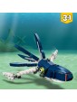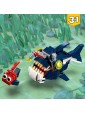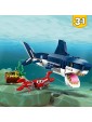 Tante avventure sottomarine ti attendono con il set Creature degli abissi LEGO® Creator 3 in 1 31088, contenente un terrificante squalo giocattolo dotato di realistici colori blu e bianco, bocca apribile con denti appuntiti, pinne mobili, articolazioni del corpo mobili e occhi riflettenti, oltre a un granchio snodabile con cassa del tesoro. Con i set LEGO Creator 3 in 1 avrai 3 diverse esperienze di costruzione e di gioco. Costruisci lo squalo e il granchio, quindi ricostruiscili per creare un calamaro o una rana pescatrice con una grande bocca per divertirti ancora di più negli abissi.