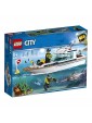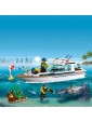 Esplora il mondo sottomarino con lo Yacht per immersioni 60221 LEGO® City! Questo fantastico Yacht per le immersioni è dotato di sun deck, tetto rimovibile, faro orientabile e spazio di stivaggio o per riposare all’interno, oltre a una scena con fondale marino, alghe e una cassa del tesoro con elemento gemma. Questa divertente barca giocattolo include anche una boa, 2 minifigure da sub LEGO e un pesce spada e un granchio.