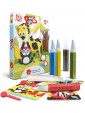 Prodotto: kit Sabbiarelli formato Midi con tutto il necessario per colorare tutti i disegni dedicati a dei buffi animali giocherelloni