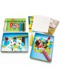 Utilizzo: Grazie ai 2 spellicolini inclusi, si rimuove facilmente la carta dai fogli e rimane la superficie adesiva da colorare. La scatola diventa un doppio vassoio per contenere la sabbia. Istruzioni ed esempi d'uso con QR code per videotutorial