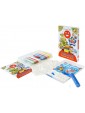 Utilizzo: grazie allo spellicolino incluso, non servono forbici o colla. Rimuovendo la carta dai fogli rimane la superficie adesiva da colorare. Contiene un vassoio per contenere la sabbia, istruzioni ed esempi d'uso con QR code per videotutorial