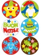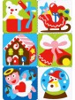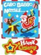 Schede: 5 fogli adesivi (15x20cm) con 24 addobbi pretagliati e 1 letterina a Babbo Natale, tutti da colorare con la sabbia