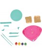 Contenuto: tornio, base, piatto rotante; accessori: due pacchetti di argilla, supporto per la decorazione e scultura, filo, due spatole, due pennelli, set di acquerelli, libro educativo da 36 pagine.