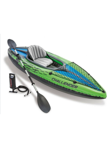Intex- Kayak Challenger, canoa gonfiabile da uomo con remi in alluminio e pompa a mano