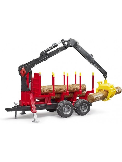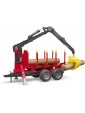 bruder 02252 - Rimorchio retroescavatore con gru di carico, 4 tronchi e pinza per legname