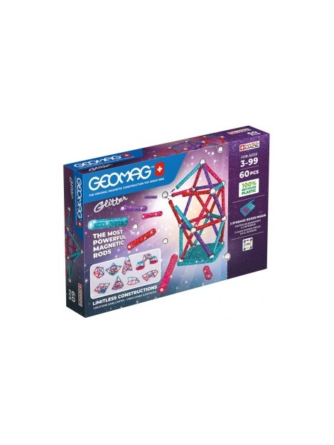 I Glitter Panels Recycled 60 pcs di Geomag sono un gioco di costruzioni creativo e ecologico. Questo set include 60 pannelli magnetici colorati, realizzati con materiali riciclati, che possono essere assemblati insieme per creare diverse forme e strutture.