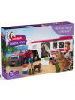 Il grande Lakeside Truck con il suo grande rimorchio è di nuovo in viaggio. Hannah e il signor Kramer non vedono l'ora: si dirigono verso un'avventura nel Western con lo stallone Quarter Horse e il castrone Paint Horse. Al mattino, hanno caricato il grande Dually Truck con le sue larghe ruote gemellate con selle, briglie, striglia, spazzola per la toelettatura, secchio e tubo dell'acqua per poter pulire i loro due cavalli prima dell'evento. Hanno anche preparato i cappelli da cowboy. Faranno una pausa lungo il percorso. Quanto è pratico che il tetto del rimorchio possa essere utilizzato anche come riparo. Hannah ha anche riempito alcuni barili con sbarre. Ha programmato una sessione di addestramento prima dell'avventura nel West. Anche il labrador retriever è a bordo. C'è molto spazio per loro nel rimorchio. Può trasportare fino a cinque cavalli! Yee-haw – avventure nel West, stiamo arrivando!