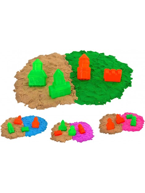 SABBIE MOBILI AMICI IL CASTELLO - Igienica e sicura. Non bagna, non secca e non lascia residui. Alta qualità, morbida al tatto. Modella infinite volte il castello con le 4 formine incluse