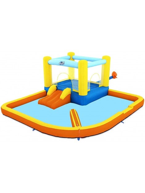 Beach Bounce è un meraviglioso parco acquatico gonfiabile ideato per divertirsi in famiglia e con gli amici. divertenti sfide a squadre. Il parco offre una serie di funzioni: un morbido castello su cui scatenarsi e saltellare, uno scivolo e una barriera di spruzzi da attraversare.